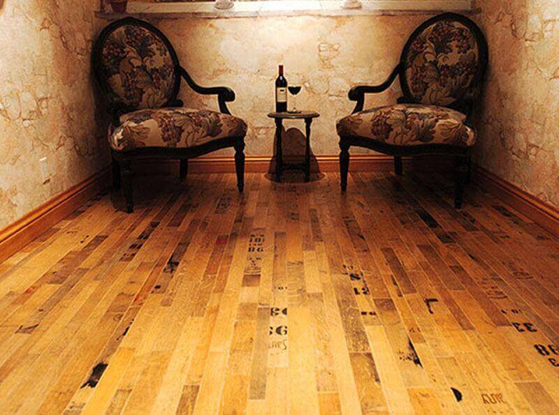 Wood floors are a great design element in a wine cellar. They look natural and warm and will hold up well to the wine cellar conditioning. Be sure to use only a rot resistant hardwood like mahogany and it’s critical that you leave a gap between the floor and the wall to allow for expansion of the floor material. The gap can be easily concealed with baseboard molding after your wine racking is installed.